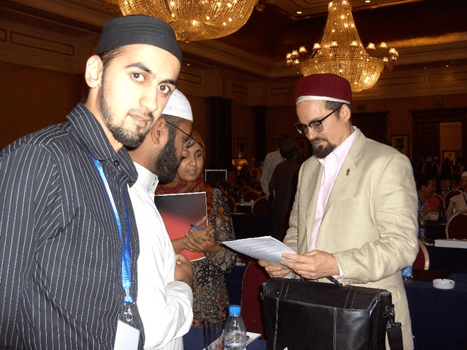 Mulla Ramadan Buti[1] whom I was fortunate to meet. He was one of the real attractions of the conference. When he would step in people would rush to him to meet him, kiss his hands, and take a picture with him.
