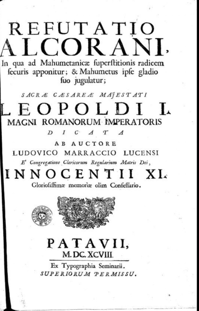 Marracci dedicated this work to the Habsburg Emperor Leopold I, who defeated the Ottomans at Vienna in 1683. The Ottomans were led by Kara Mustafa Pasha on behalf of Sultan Mehmed IV. This marked the end of Ottoman expansion to the West. The Ottomans and the Habsburgs were in perpetual war for European domination. The Habsburgs considered themselves the Roman Empire from the time of Charlemagne, whereas the Ottomans considered themselves the vanguards of the Muslims.